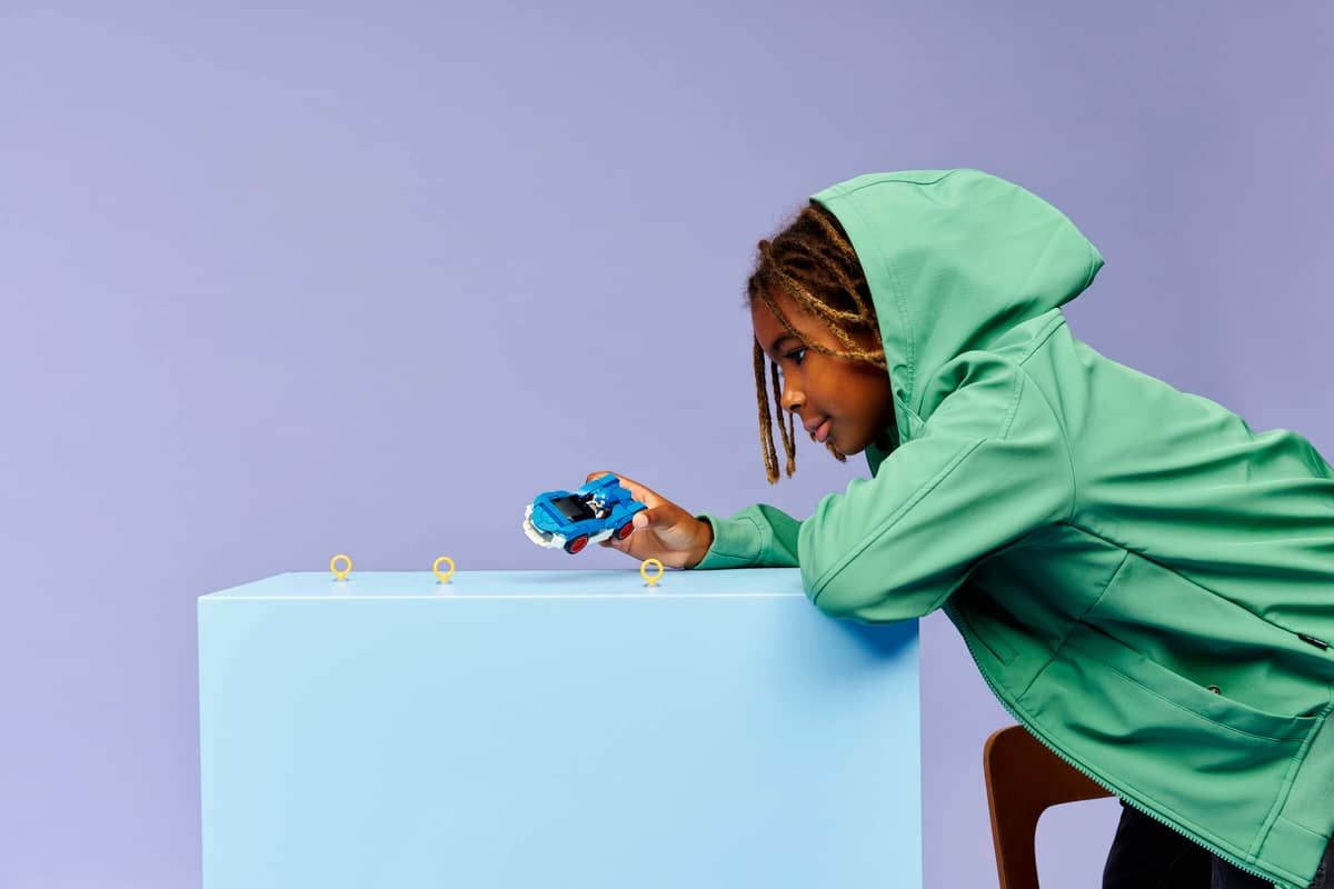 Kids aged 7 and up can look forward to exhilarating racing adventures with the LEGO® Sonic the Hedgehog™ Sonic: Speedster Lightning (77117) building set. Based on the Sonic Racing: CrossWorlds console video game, boys, girls, and video game fans can race and collect all 3 golden Rings with a Sonic minifigure and his signature cheeky facial expression. This interactive blue and white toy vehicle in the LEGO gaming set features wide red-rimmed tires and a hood that opens to reveal a hidden Chaos Emerald. This collectible from the Sonic universe makes a fun birthday present or a great gift for gamers on any occasion. Combine it with other LEGO Sonic the Hedgehog™ playsets in the range (all sold separately) to expand the action and adventures. Plus, kids can build with confidence using the LEGO Builder app, which lets them zoom and rotate their models with 3D instructions, as well as save sets and track their progress, all from within the app. The set contains 126 pieces.