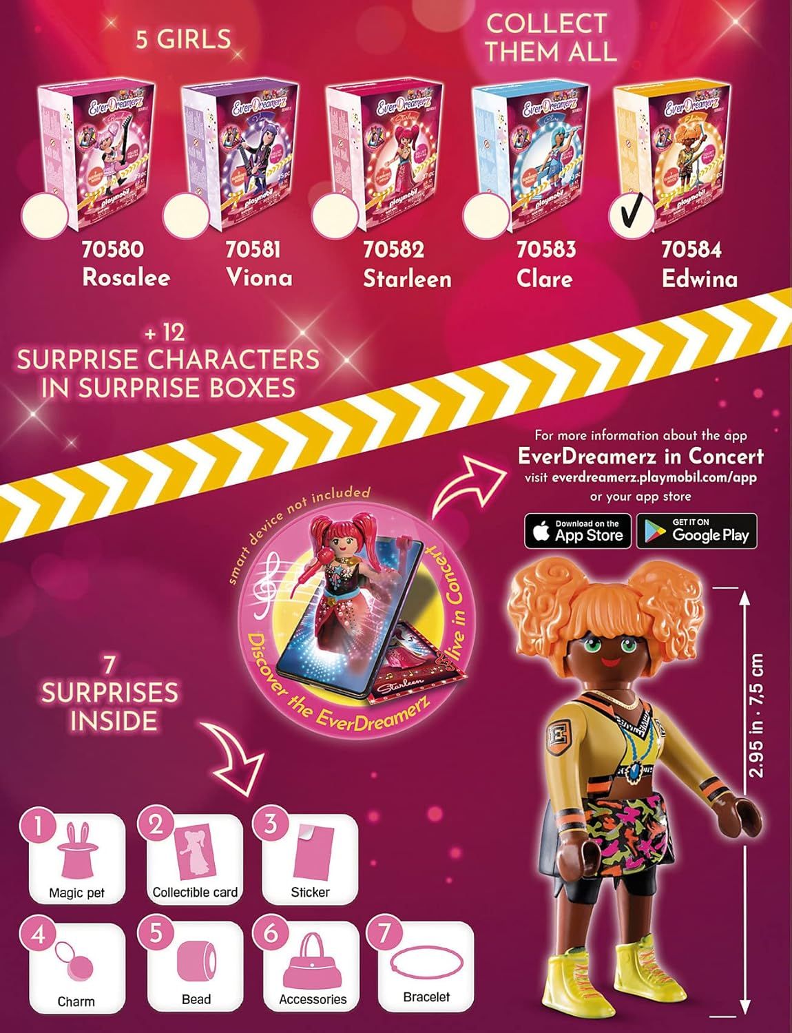 Edwina is the sporty one of the girls. She's adventurous, open to challenges, and loves trying new things. She passionately demonstrates her adaptability and sense of rhythm on the drums. The set includes a silicone bracelet, beads, a drum set charm, a collectible card, a sticker, and many accessories. From the Playmobil brand. Perfectly sized for little hands with rounded edges that are comfortable to the touch. For everyday play: includes instructions for assembly with parental assistance, high quality and robust design, easy cleaning of the pieces (no stickers) with running water and no chemicals.